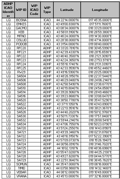 With this AIRAC AIP SUP a trial PBN satellite based RNAV SIDs RWY 29 are available for testing purpose only at Sarajevo Airport. The satellite instrument flight procedure is GNSS based and contain SID flight procedures for RWY 29.
