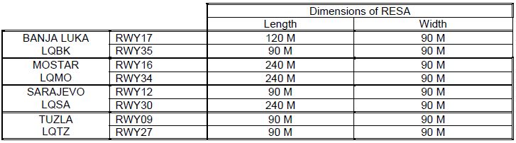 REF: Regulations on Aerodromes, ¨Official Gazette BiH¨, No: 09/11, 07/02/2011, Part 3 – Fisical caracteristics, Chapter 4, Article 35, Runway end safety areas. Remark: In local language only.